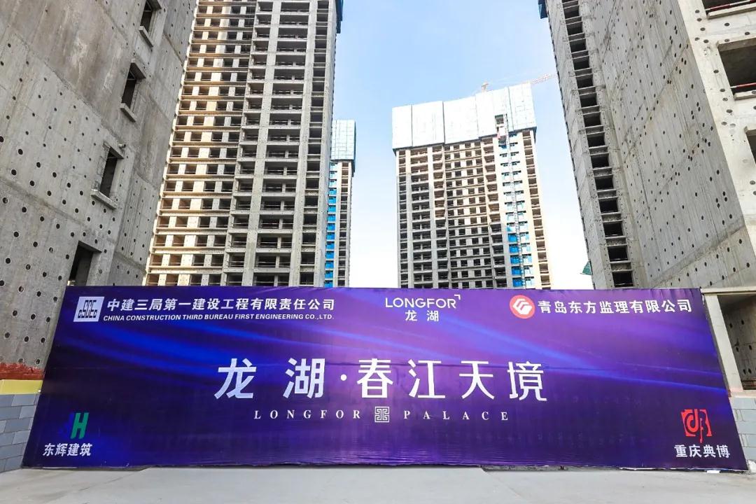龙湖·春江天境由6栋高层住宅、1栋高层人才公寓及3栋办公楼组成,划分为两期三个标段开发建设。该工程总建筑面积约21.09万平方米,其中6栋住宅均为精装竣备及交付,共计700余户。均采用全砼外墙+铝合金模板体系+附着式升降脚手架。