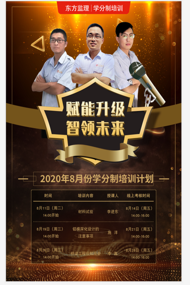 2020年初,在疫情之下尚未复工复产之时,公司内部在钉钉群里下发了关于加强专业知识培训的视频课件,要求公司全员在防疫期间加强专业学习。其后,在2020年全年,公司共组织29次学分制培训,每月安排讲师进行各专业线上授课。