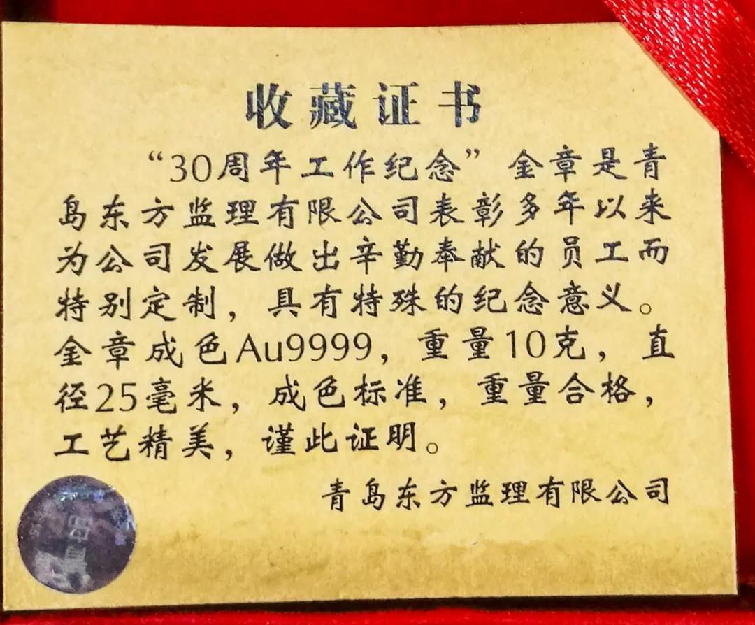 东方监理公司胡民、刘红艳、高峰、李奉森、刘建昌荣获三十年功勋人士纪念金牌。郑德斋荣获二十年功勋人士纪念银牌。