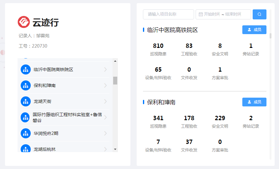 经过近两年的全公司大面积使用及测试,再结合监理行业数字化转型的需要,“云迹行”2.0版本在今年的10月15日正式上线和大家见面了。“云迹行”2.0版本是在原始版本的框架下,增加了监理资料导出功能,可以导出个人监理日记、项目监理日志、监理通知单、旁站记录等监理内业资料,还设置了”看板“功能,可以将每个人日常的上传、使用情况展示出来,让每个人的监理工作更直观。同时结合两年的使用情况,修改了原始版本中存在的部分不实用的内容。